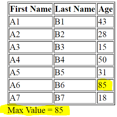 C Java Php Programming Source Code Javascript Html Table Maximum Value